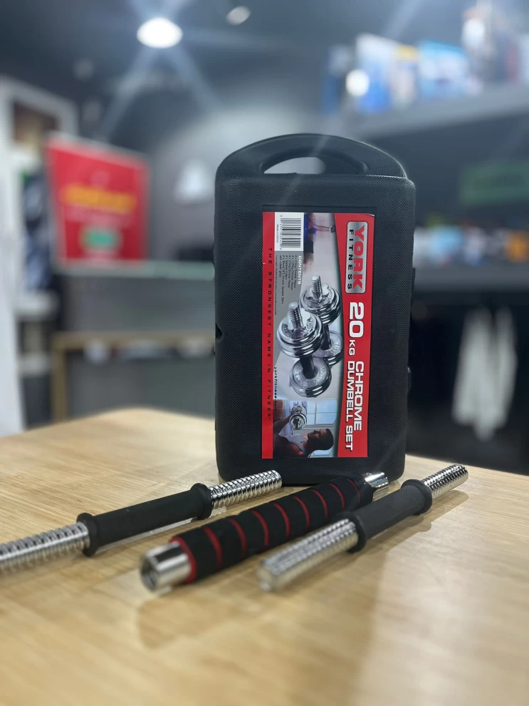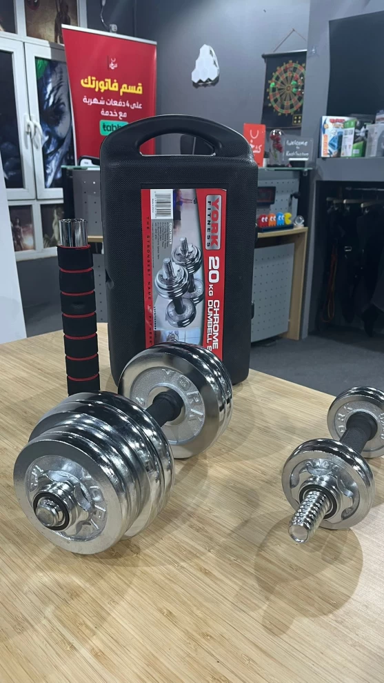 ارتقِ بتمارينك مع طقم York القابل للتعديل بوزن 20 كجم المصنوع من الكروم المتين. يمكنك استخدامه كـ دامبل أو بار لتغطية جميع تمارين الجسم. يتميز بتصميم عملي يتيح لك تعديل الأوزان بسهولة وفقًا لاحتياجاتك، مما يجعله خيارًا مثاليًا للتمارين المنزلية أو صالة الألعاب الرياضية.