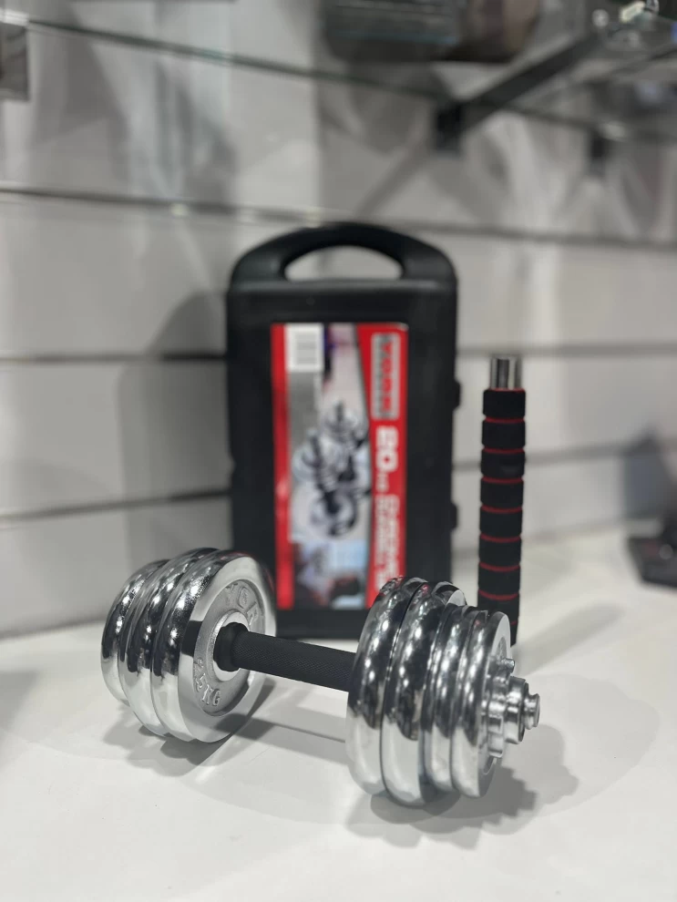 🏋️‍♂️ طقم دامبل وبار حديد قابل للتعديل – 20 كجم