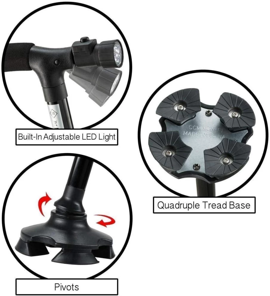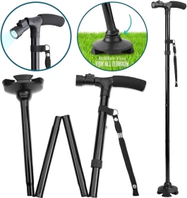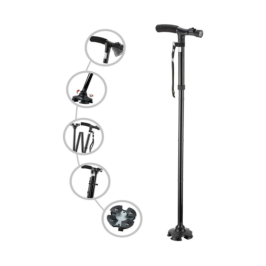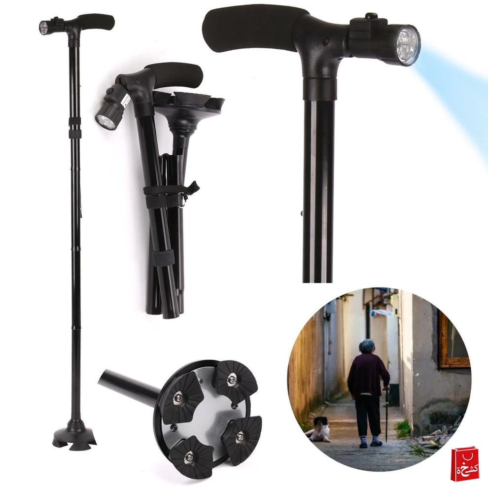 عصا مساعدة على المشي مصممة للأمان والراحة، مزودة بضوء LED للرؤية الليلية، وتطوى بسهولة عند عدم الاستخدام. مثالية لكبار السن، أو أثناء فترة التعافي، أو لمن يحتاج
