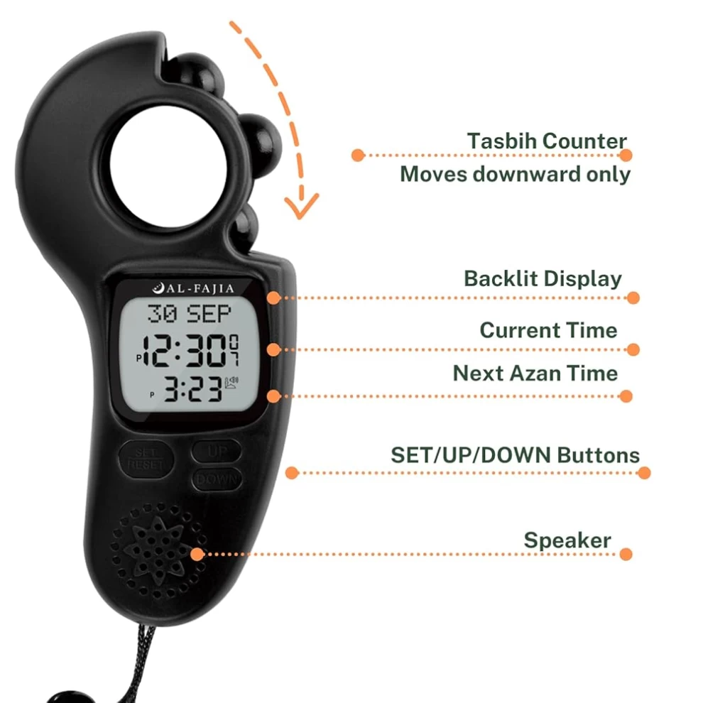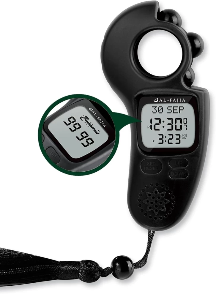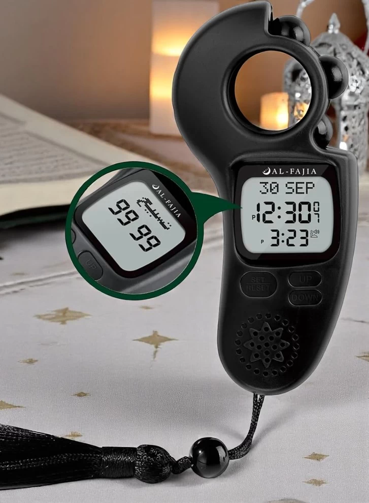 • 🔢 مسباح رقمي مع خرز دوّار – يعطيك نفس إحساس المسباح الحقيقي، مع عدّ إلكتروني مريح وهادئ.