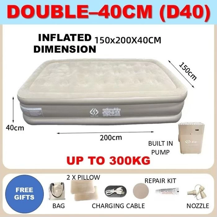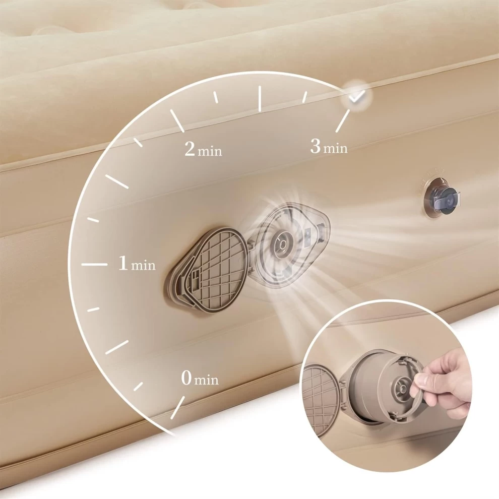• ⚡ مضخة كهربائية مدمجة – تنفخ وتفرغ الهواء تلقائيًا خلال 3 إلى 5 دقائق