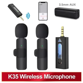 سجّل صوتاً بجودة احترافية بسهولة مع ميكروفون K35 اللاسلكي المزدوج – الرفيق المثالي لصنّاع المحتوى، المدوّنين، المعلمين، والمراسلين الذين يبحثون عن وضوح الصوت وبساطة الاستخدام. يتميز بميكروفونين لاسلكيين بمشبك، واتصال عبر منفذ AUX 3.5 ملم، وتقنية مدمجة لتقليل الضوضاء في الوقت الفعلي – كل ذلك بدون الحاجة إلى تطبيقات أو إعدادات معقدة.