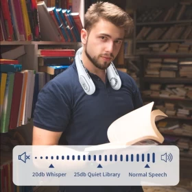 ابقَ منتعشًا في أي مكان بدون استخدام اليدين! مروحة J18 حول الرقبة تأتي بتصميم أنيق وآمن بدون شفرات، مزودة بشاشة رقمية وتشغيل هادئ – مثالية للصيف والسفر والرياضة.
