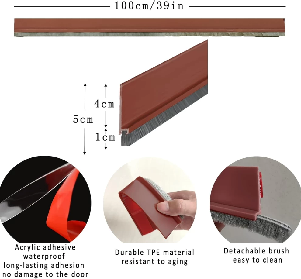 🚪 حاجز أسفل الباب مع فرشاة عازلة للصوت – ا (100 سم)
