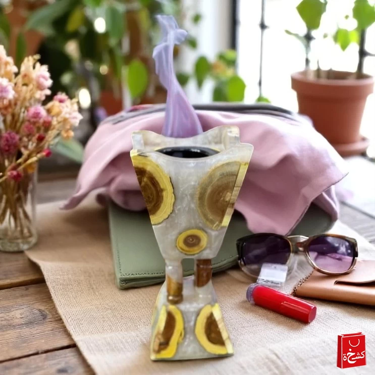 • 🧱 الخامة: راتنج فاخر + وعاء داخلي معدني