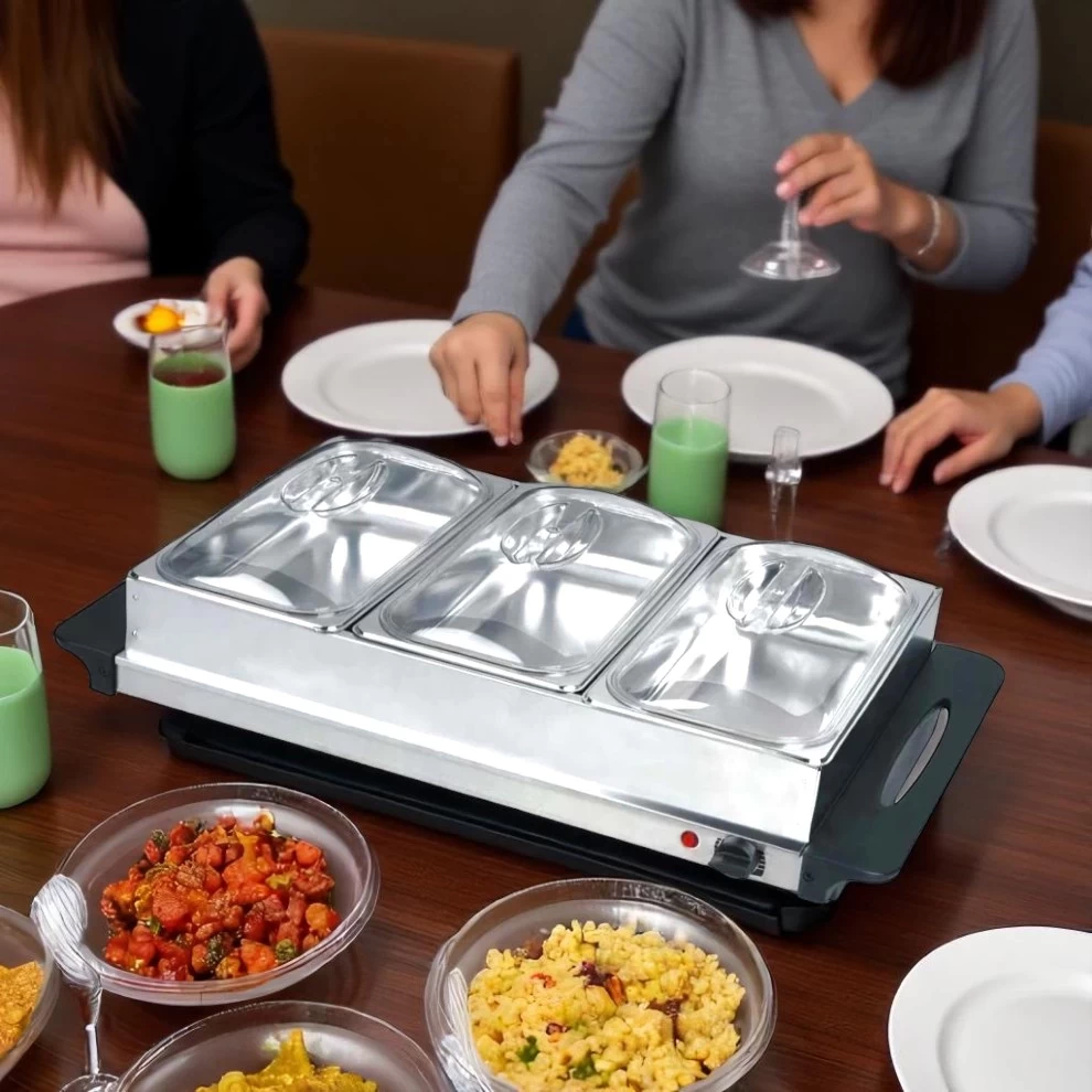 • 🍲 جهاز 2 في 1 – يعمل كصينية تسخين أو بوفيه تقديم