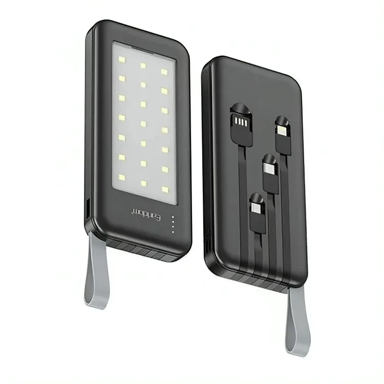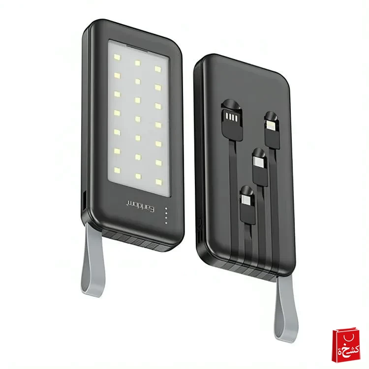 باور بانك Earldom ET-PB48 – سعة 10000 مللي أمبير | كيابل مدمجة ×3 | أسود