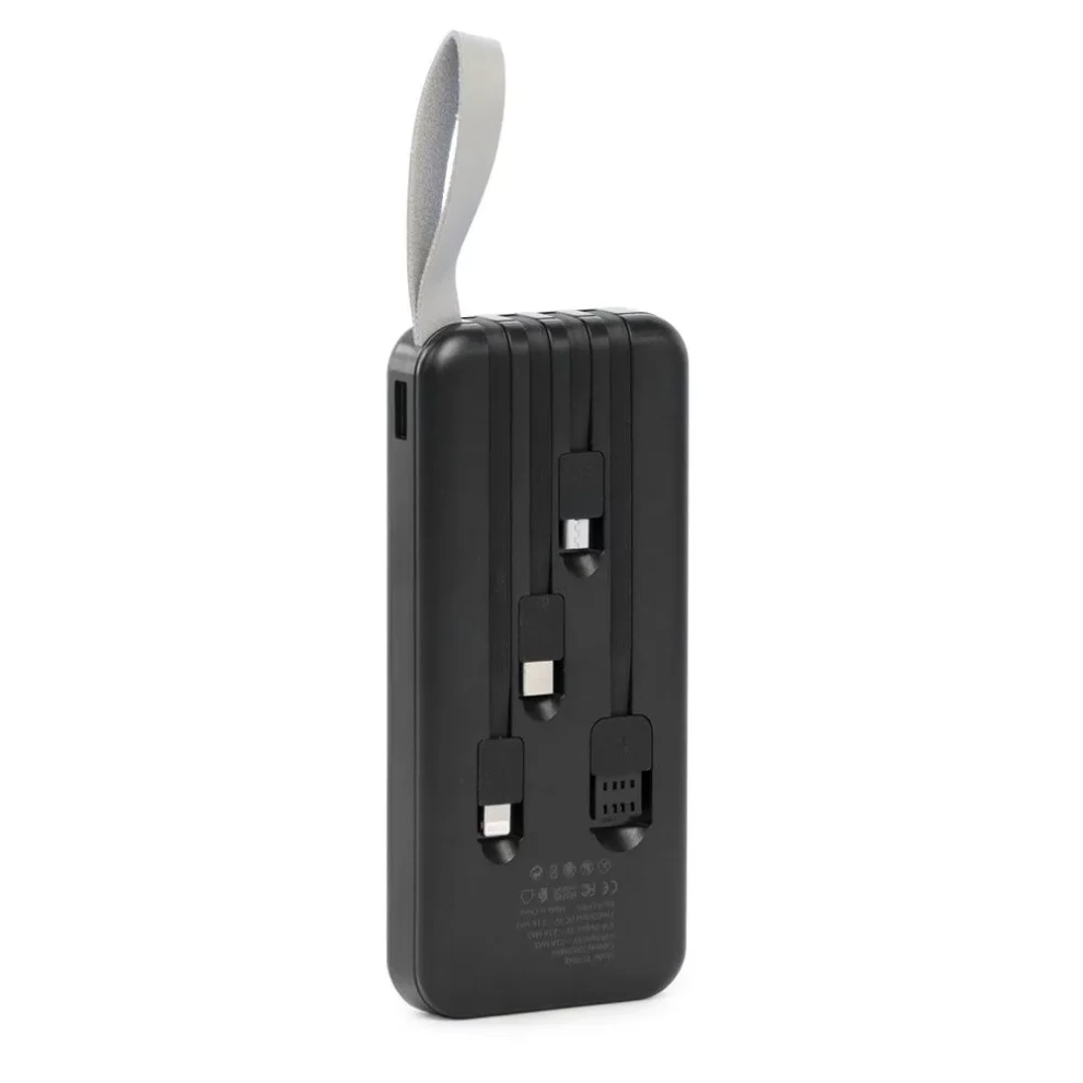 • 🔌 المخرجات: كيابل مدمجة (تايب C + لايتنينغ + مايكرو USB)