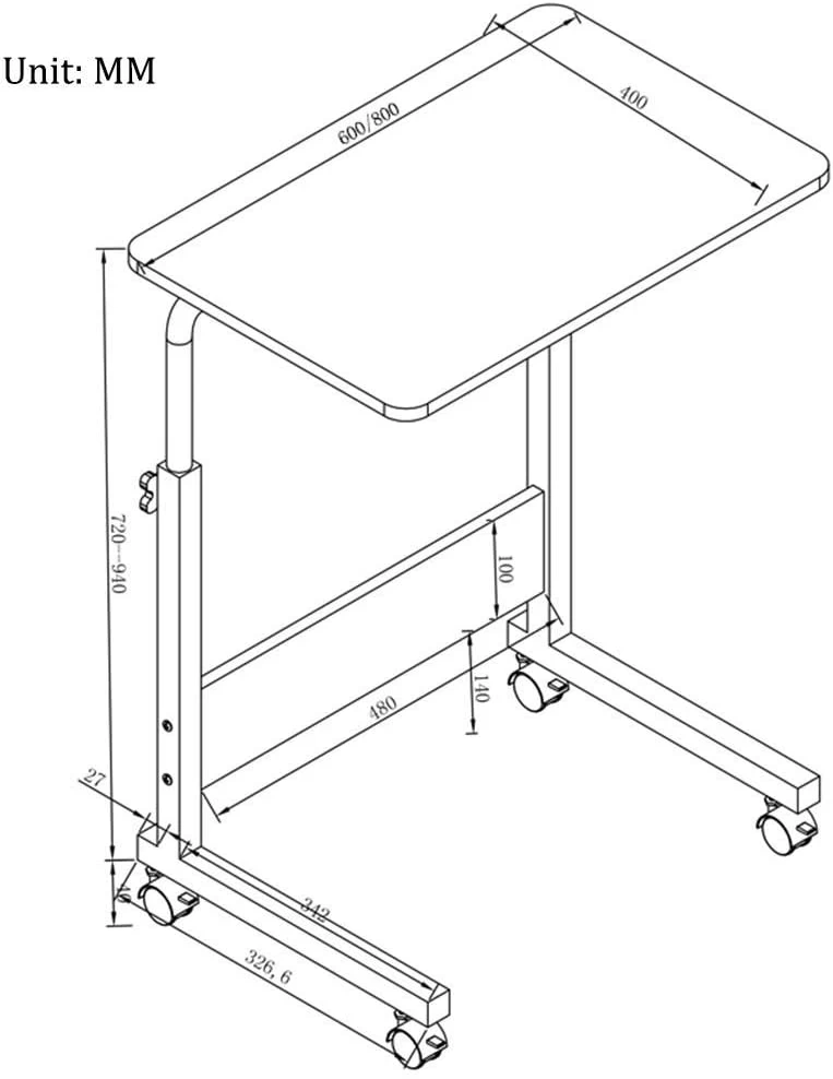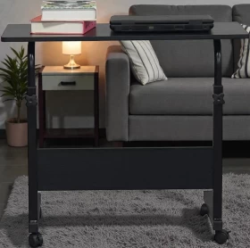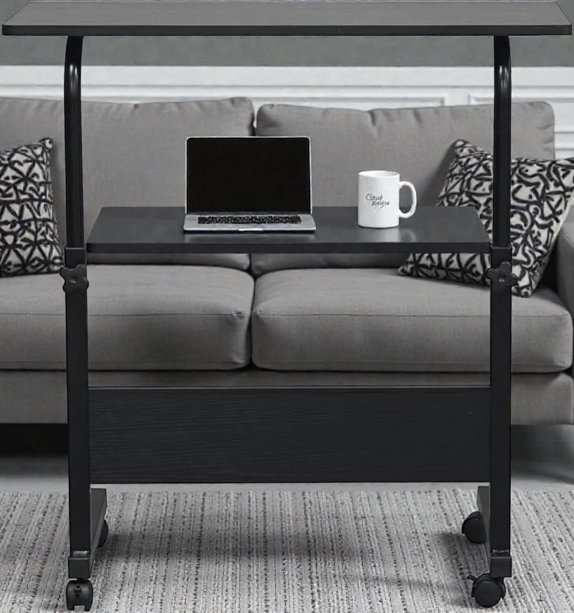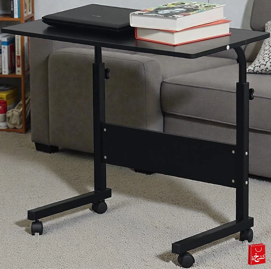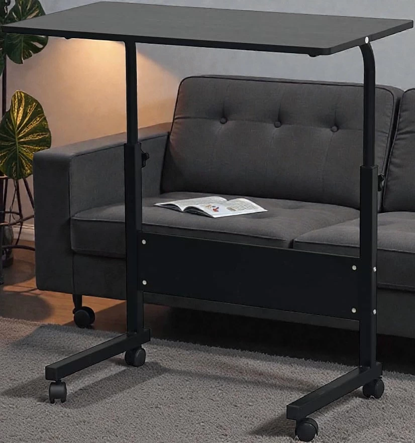 طاولة لابتوب جانبية متحركة قابلة للتعديل مع عجلات – 70 سم | أسود