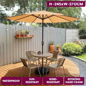 🌞 مظلة خارجية مقاومة للرياح مع قاعدة – 270 × 198 × 245 سم 🌿