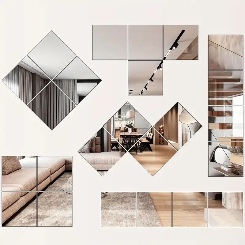 أضف لمسة من الأناقة والضوء إلى منزلك مع طقم المرايا الحائطية المربعة المكوّن من 4 قطع، المصنوع من أكريليك فاخر عالي الجودة. على عكس المرايا البلاستيكية التقليدية التي تتعرض للخدش أو الالتواء، يتميز هذا الطقم بسطح عاكس واضح ومتين وآمن تمامًا، مثالي للمنازل العصرية والعائلات.