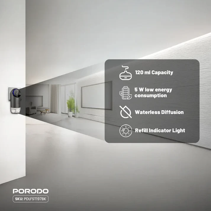 حوّل أجواء منزلك أو مكتبك مع موزع العطور الجداري من بورودو لايف ستايل. بتصميمه العصري الأنيق وآلية التشغيل السهلة، يملأ المكان برائحة زكية من الزيوت العطرية المفضلة لديك. مثالي لـ غرف النوم، المكاتب وغرف المعيشة الصغيرة، ليمنحك تجربة استرخاء وراحة متجددة يومياً.