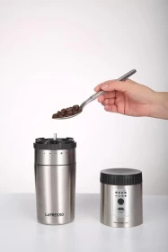 استمتع بالقهوة الطازجة في أي مكان مع ليبريسو المحمولة – مطحنة ومكينة قهوة في كوب واحد. يجمع هذا الجهاز المدمج بين مطحنة القهوة وكوب التحضير، مثالي للمسافرين، موظفي المكاتب، أو عشاق القهوة أثناء التنقل. قم بطحن الحبوب مباشرة في الكوب وحضّر كوبك المفضل بسهولة – بدون أدوات إضافية.