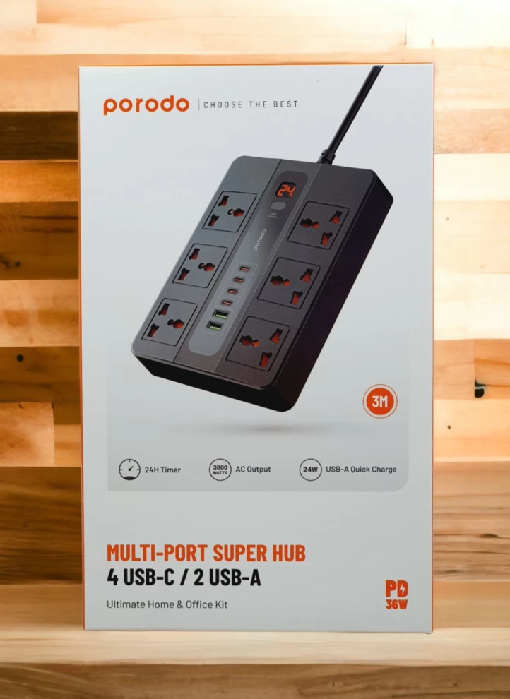 ارتقِ بتجربة الشحن في منزلك أو مكتبك مع موزع الطاقة المتعدد من بورودو. يأتي بـ 4 منافذ USB-C و2 USB-A لتشغيل وشحن جميع أجهزتك في وقت واحد بسرعة وكفاءة عالية. بفضل الكابل بطول 3 أمتار، يمكنك وضعه بسهولة في أي مكان لتنظيم المساحة وتجنب الفوضى.