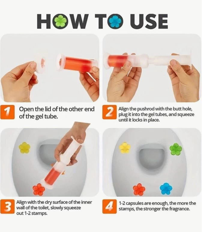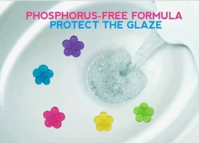 احصل على دورة مياه نظيفة ومنعشة دائمًا مع جل تنظيف وتعطير المرحاض على شكل زهرة. يجمع هذا المنتج بين التنظيف، التعقيم، والتعطير في آنٍ واحد. ما عليك سوى لصقه داخل المرحاض لتستمتع برائحة عطرة ونظافة تدوم مع كل سحب مياه.