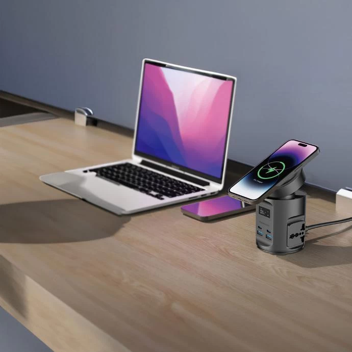 • 🔌 المنافذ: 1 × USB-C PD، 1 × USB-A QC 3.0، 1 × MagSafe Wireless