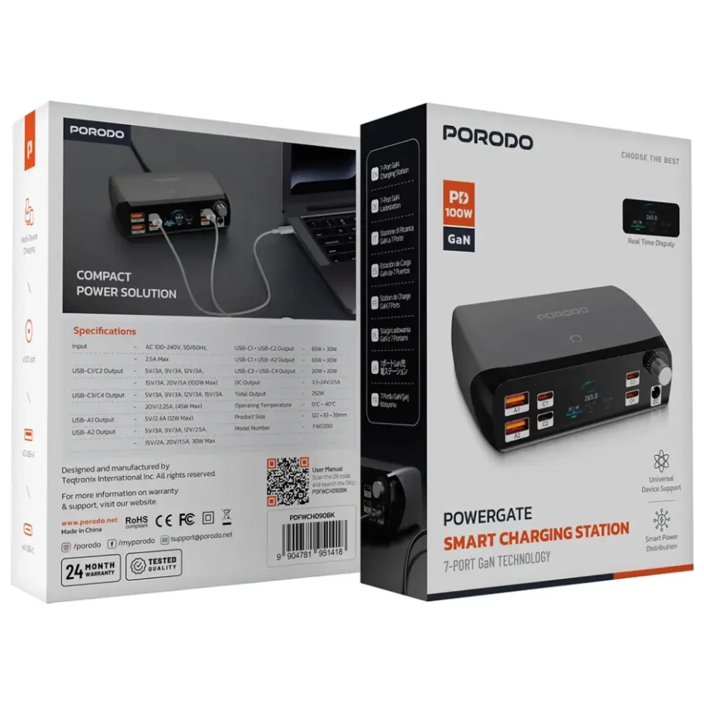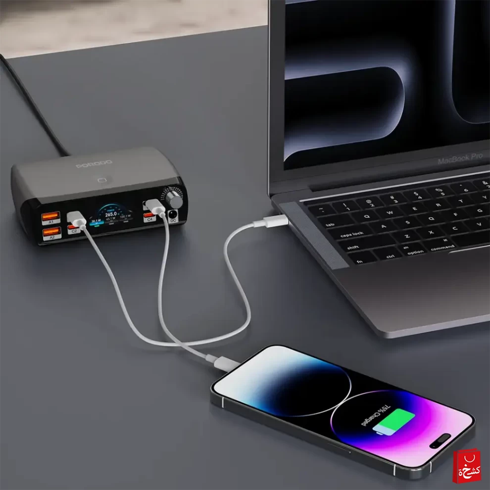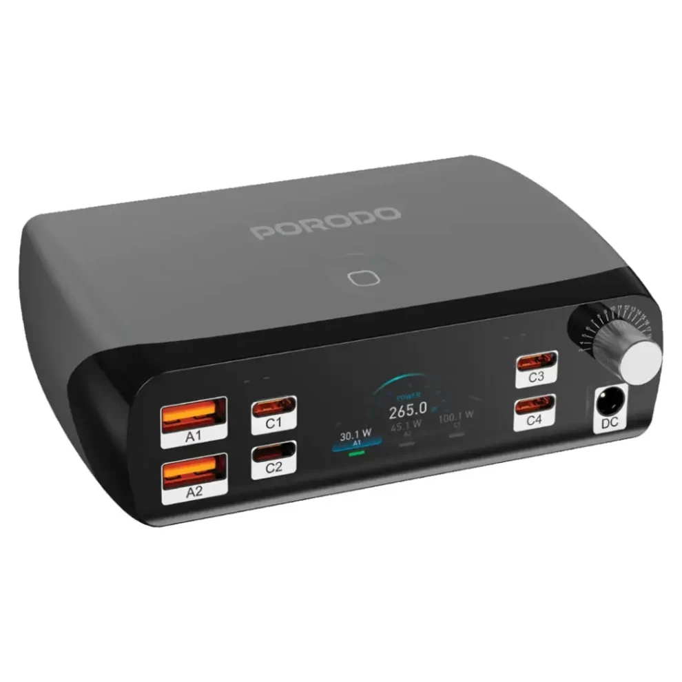 حافظ على تنظيم وشحن أجهزتك بسهولة مع قاعدة الشحن الذكية من بورودو PowerGate. تحتوي على منافذ متعددة للشحن السريع، مما يسمح بشحن الهواتف، الأجهزة اللوحية، السماعات، الساعات الذكية وغيرها في نفس الوقت — بدون فوضى الأسلاك.
