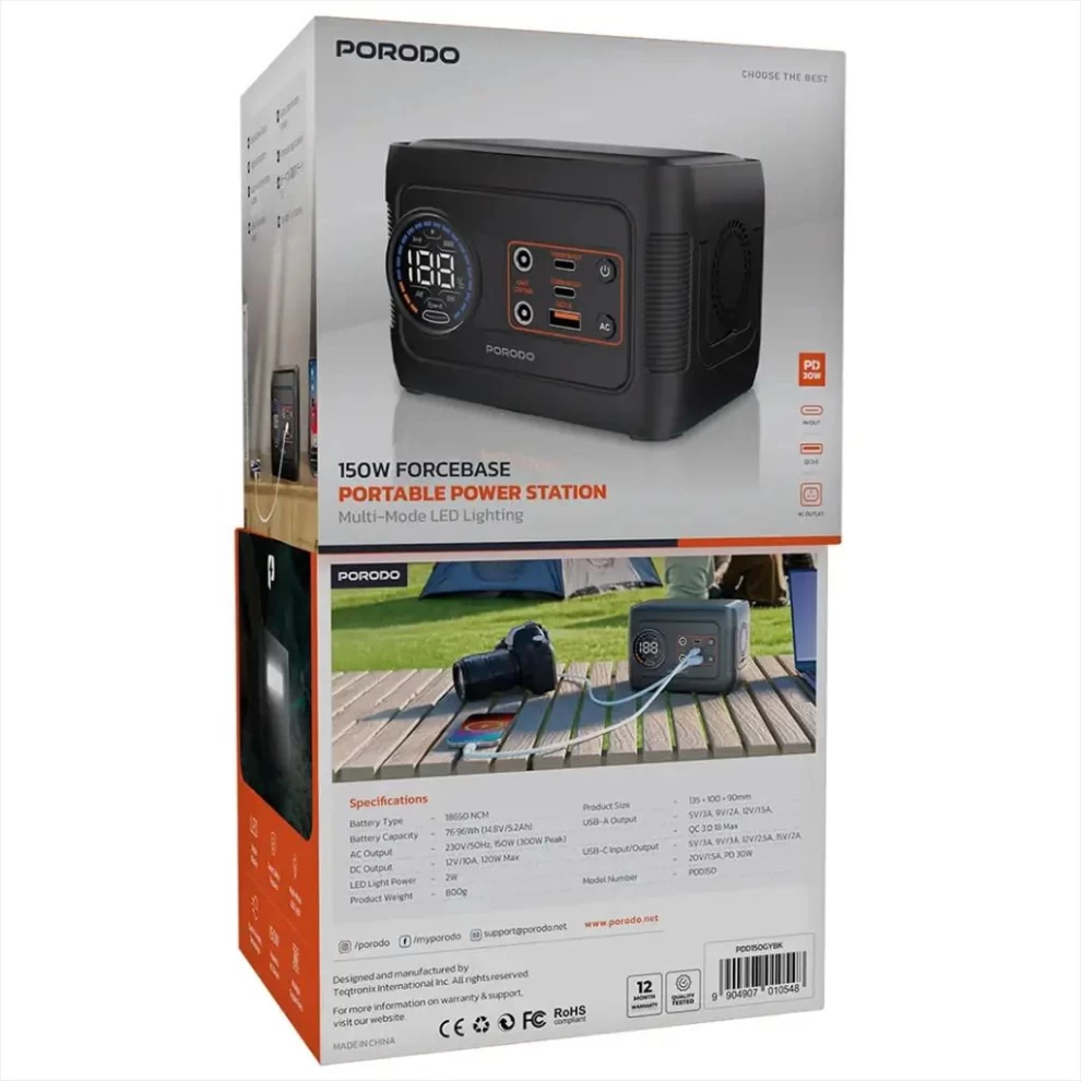 تمنحك محطة الطاقة المحمولة بورودو 150 واط طاقة احتياطية موثوقة في أي مكان. مثالية لـ الرحلات، التخييم، السفر، والعمل عن بُعد، بحجم صغير وسهل الحمل.