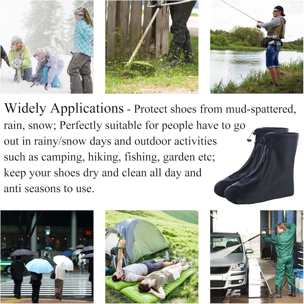 حافظ على حماية أحذيتك من البلل والأوساخ مع أغطية الأحذية المقاومة للماء. مصنوعة من PVC متين مع نعل مطاطي مقاوم للانزلاق، هذه الأغطية مثالية للأيام الممطرة، الثلج، ركوب الدراجات، التخييم، الصيد أو البستنة. سهلة الارتداء والخلع وتوفر غطاء كامل وحماية من الرمال أثناء نشاطاتك الخارجية.