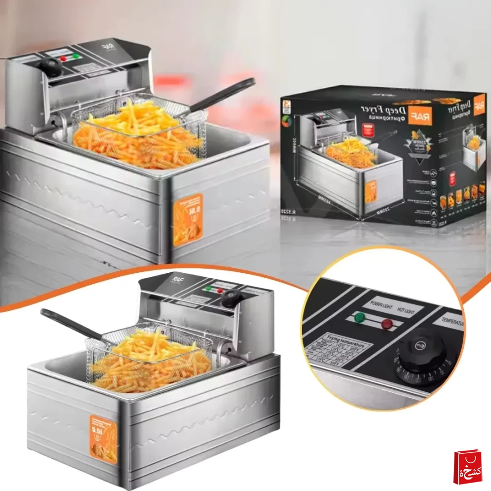 استمتع بوجبات مقلية مثالية في المنزل مع قلاية RAF الكهربائية بسعة 5.5 لتر وقدرة 2500 واط. مصممة لتوفير تسخين سريع ومتساوٍ، مثالية للقلي البطاطس، الدجاج، الأسماك، والمزيد. مع سعة كبيرة، تحكم بدرجة الحرارة، وميزات أمان، فهي الخيار الأمثل للعائلات والتجمعات.