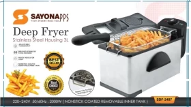 اقلي وجباتك المفضلة بسرعة وبشكل متساوٍ مع قلاية Sayona الكهربائية بسعة 3 لتر. مع هيكل من الستانلس ستيل، تحكم بدرجة الحرارة، وميزات أمان، هذه القلاية مثالية للبطاطس، الدجاج، الأسماك، والوجبات الخفيفة. تصميمها الصغير والقوي يجعل طهي الطعام في المنزل بجودة المطاعم أمرًا سهلاً.