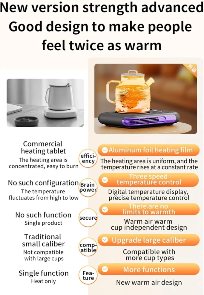 حافظ على مشروباتك دافئة طوال اليوم مع مدفأة الأكواب الذكية، المناسبة للقهوة، الشاي، الحليب، الماء وجميع المشروبات الساخنة. مثالية للاستخدام في المنزل أو المكتب.