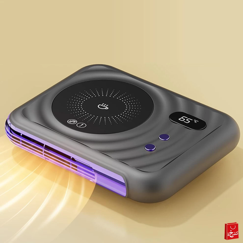 🔥 مدفأة أكواب كهربائية 2 في 1 – 3 مستويات حرارة (اللون الرمادي)