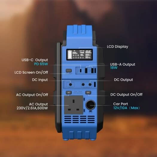 ابقَ على اتصال دائمًا مع مولد Powerology المحمول 600 واط المزوّد بقدرة بطارية ضخمة 192000mAh ولوح شمسي مدمج للشحن في أي مكان. مثالي للتخييم، الرحلات، الطوارئ، والعمل الخارجي.