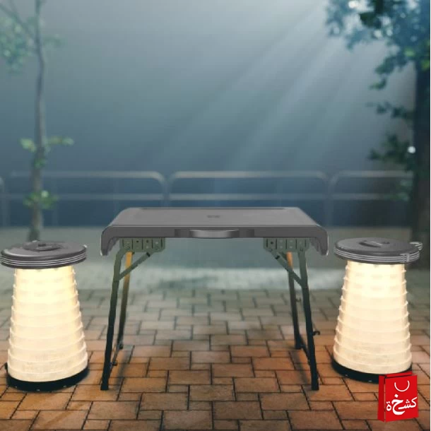 ✨🌲 طقم طاولة خارجية محمولة من Porodo Lifestyle مع مقاعد قابلة للطي بإضاءة LED
