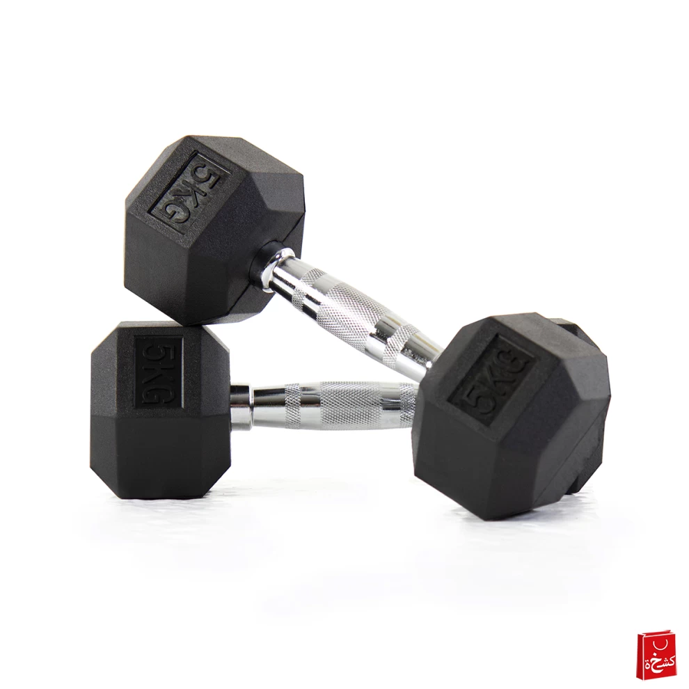 دمبل سداسي مطاطي – أسود 5KG متين وغير قابل للانزلاق