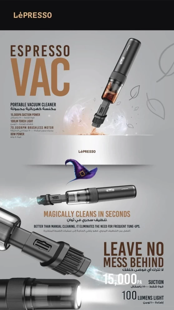 🧹 مكنسة كهربائية محمولة من LePresso | صغيرة وقوية