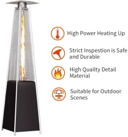 استمتع بالدفء في الهواء الطلق مع دفاية الغاز الهرمية ب3 أنابيب زجاجية، التي توفر 13,000 واط من الحرارة للحدائق، التراسات، والمناسبات الخارجية. تصميمها الهرمي مع 3 أنابيب زجاجية مرئية يجمع بين الأناقة والكفاءة في توزيع الحرارة.