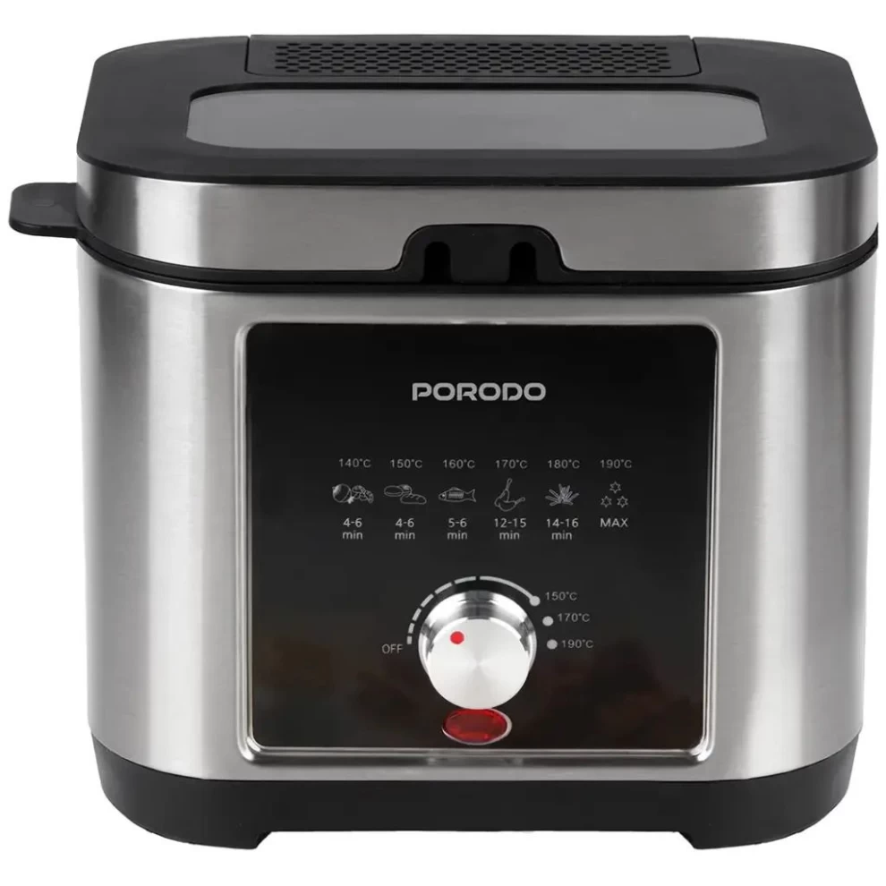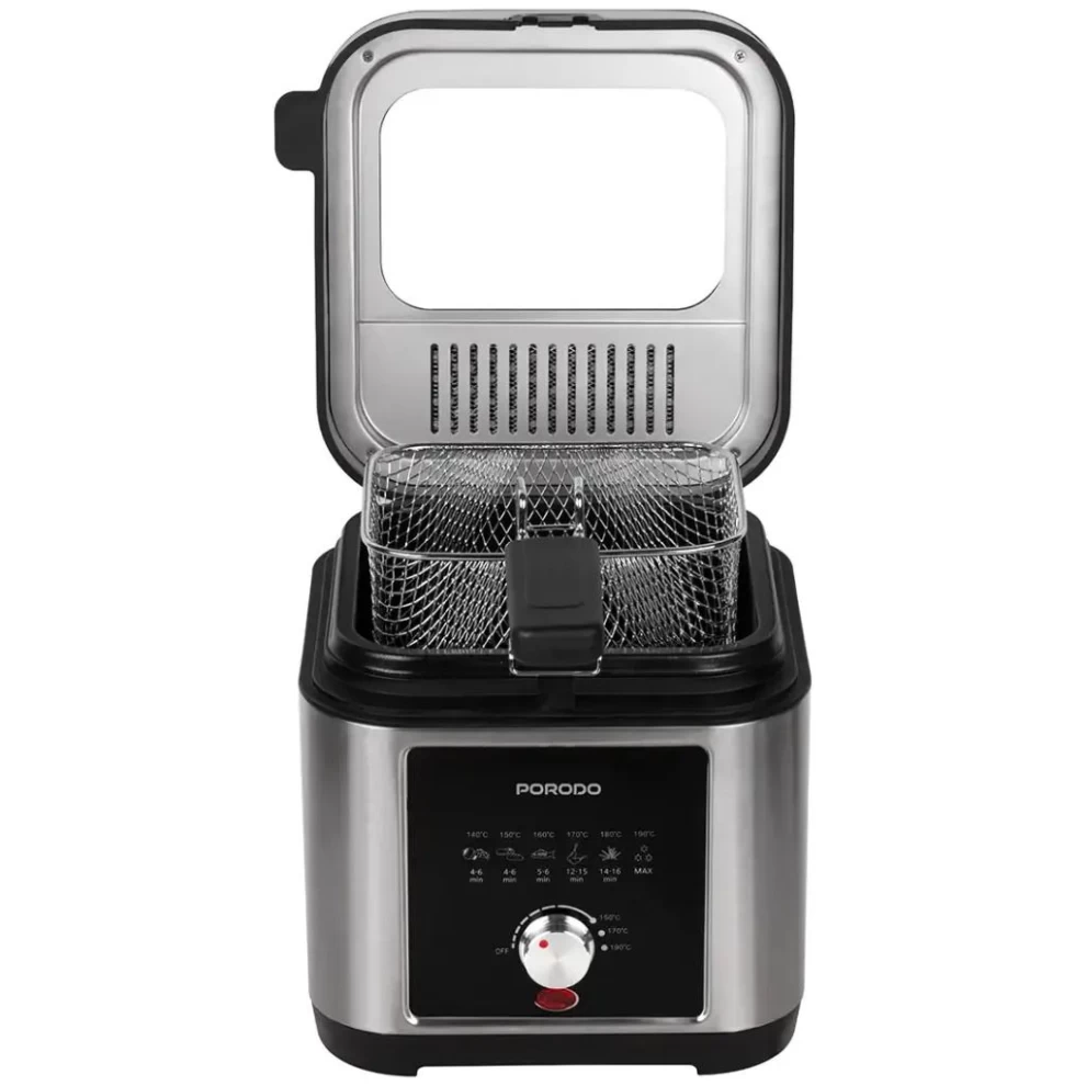 استمتع بطهي مقرمش ولذيذ في المنزل مع قلاية Porodo Lifestyle العميقة بسعة 2.5 لتر، والمصممة لتوفير تحكم بدرجة الحرارة مع سلة غير لاصقة وهيكل متين من الستانلس ستيل لتوزيع حرارة مثالي.