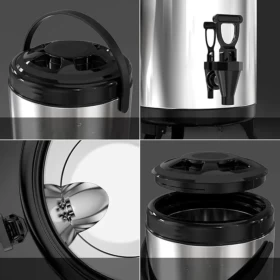 قدّم المشروبات الساخنة أو الباردة باحترافية مع موزّع المشروبات الحراري من الستانلس ستيل – سعة 12 لتر. مصمم خصيصًا لـ المناسبات، المكاتب، المطاعم، وخدمات الضيافة، حيث يحافظ على درجة حرارة المشروبات لساعات طويلة بفضل العزل الحراري عالي الجودة. عملي، متين، وأنيق.