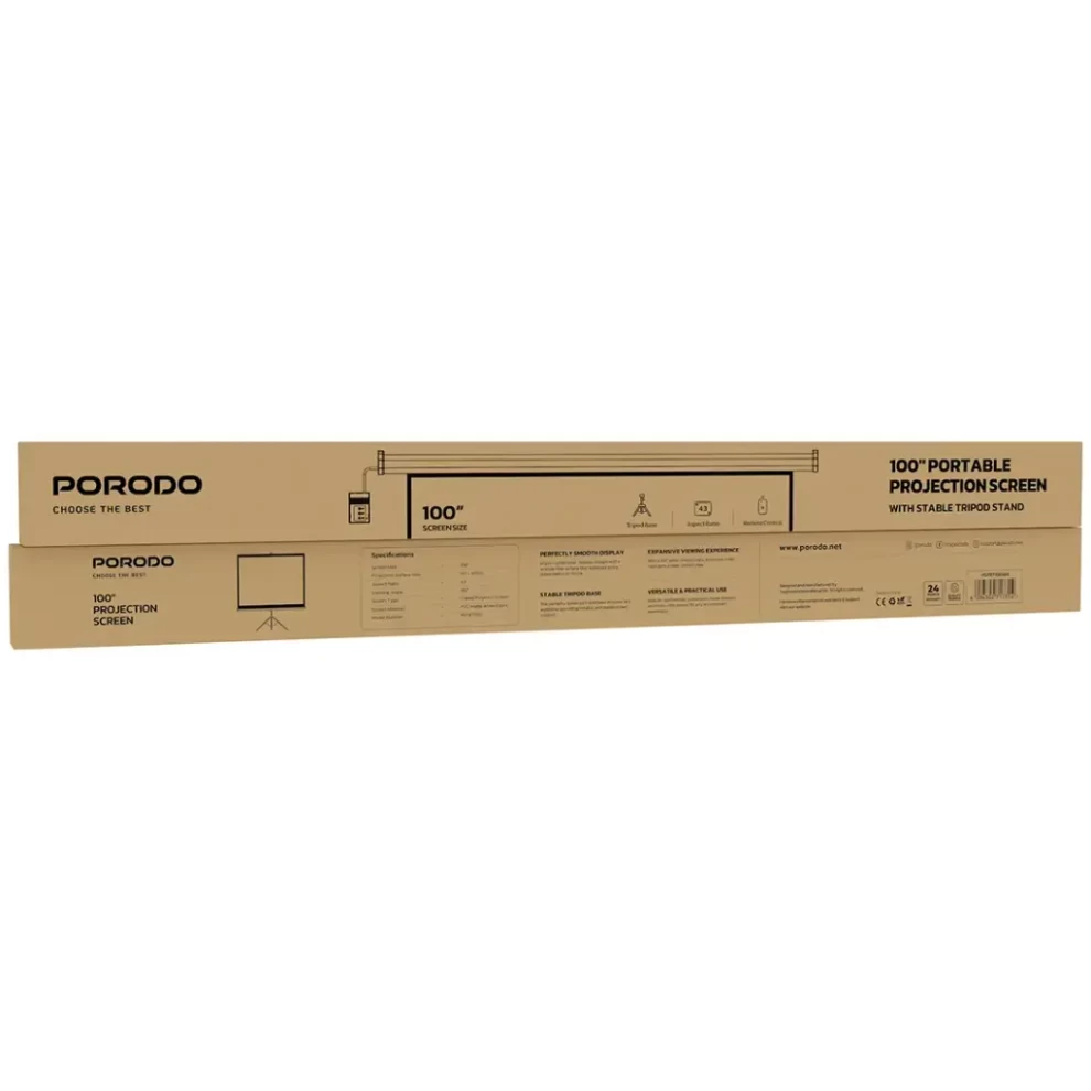 شاشة عرض بروجيكتور Porodo مقاس 100 بوصة مع حامل ثلاثي