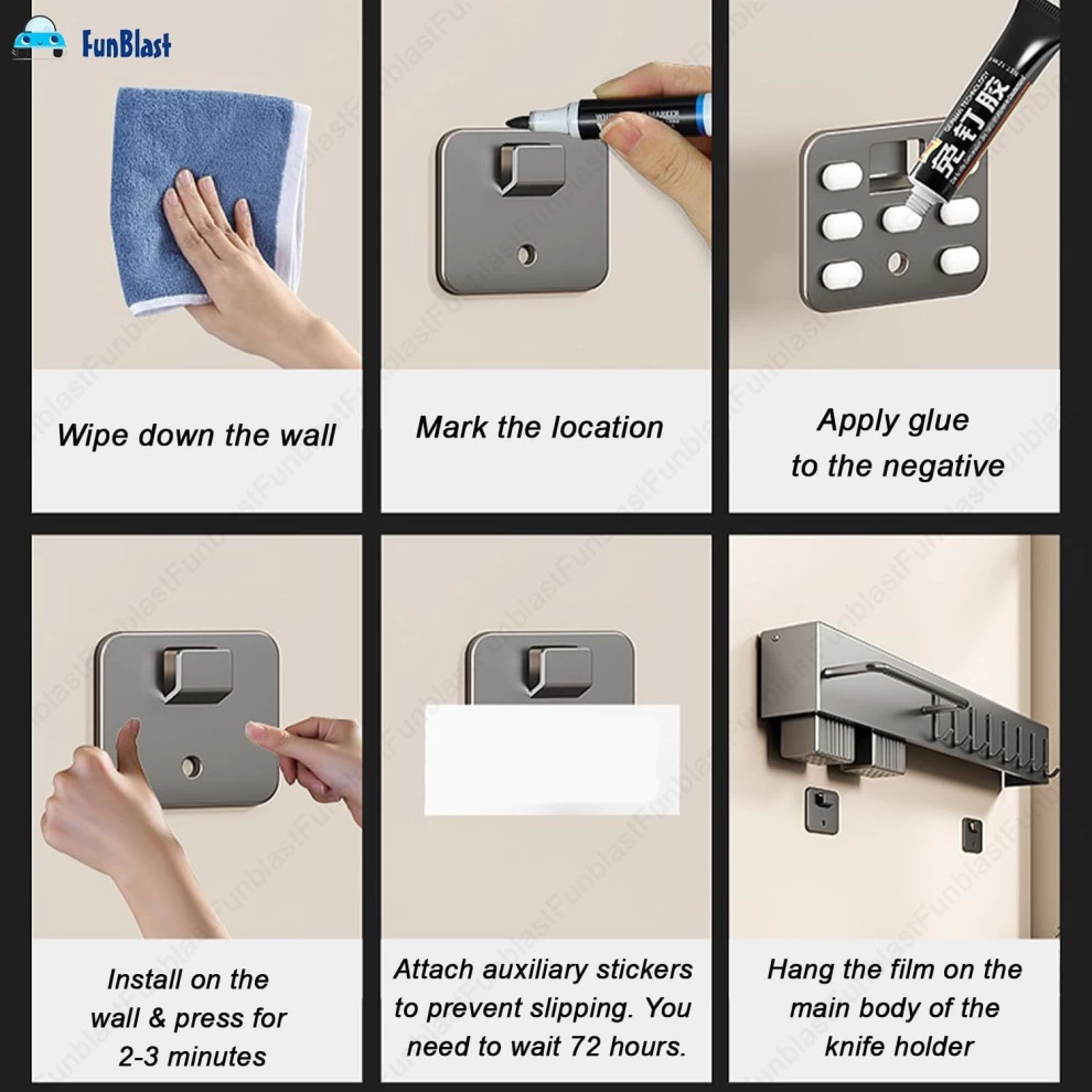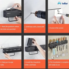 • 🍳 تخزين متعدد الوظائف – رف + خطافات + حامل مناشف