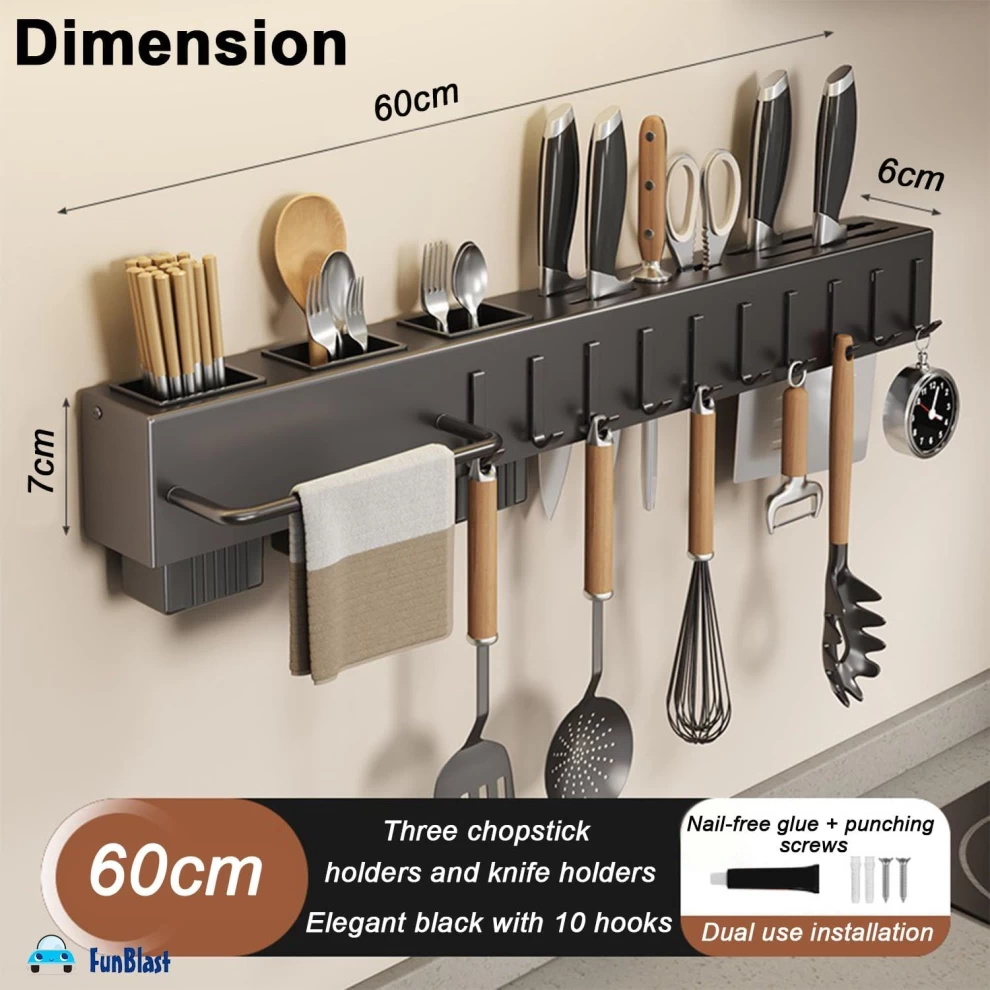 نظّم مطبخك بذكاء مع رف أدوات المطبخ المثبت على الحائط (60 × 7 × 6 سم) — الحل المثالي لتوفير المساحة والحفاظ على أدواتك في متناول اليد.