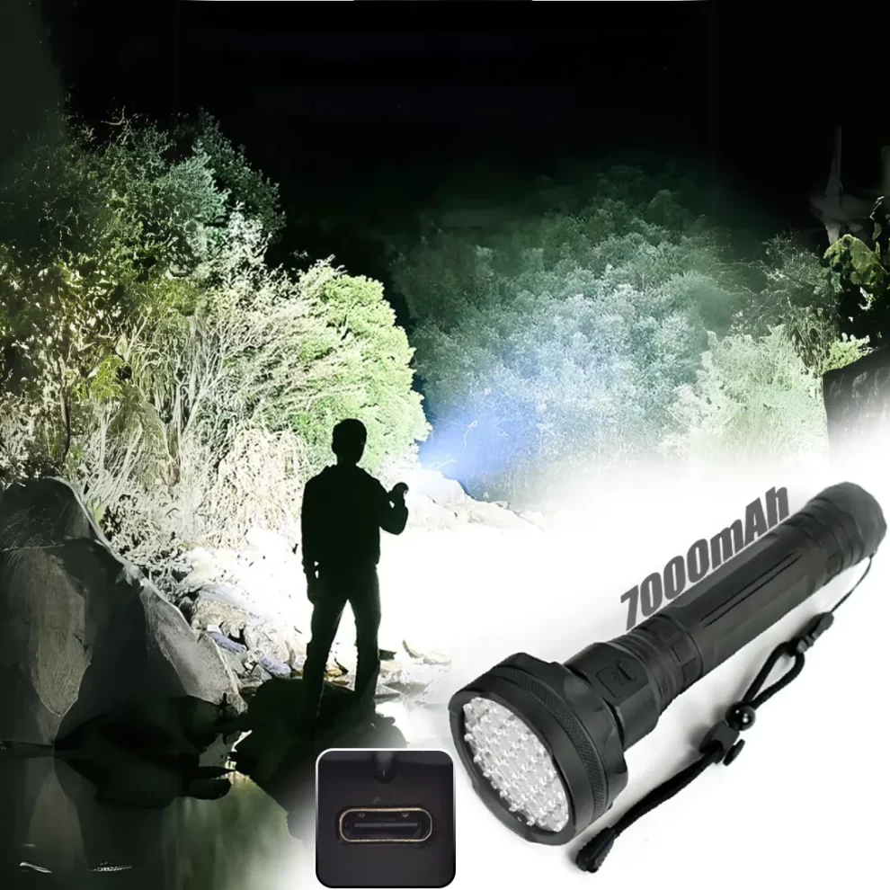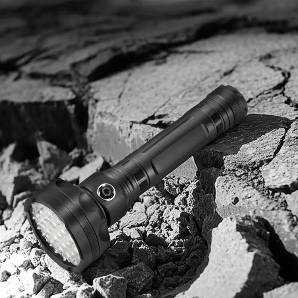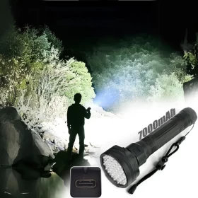 استمتع بإضاءة قوية وموثوقة مع الكشاف القابل للشحن عالي السطوع، المصمم للاستخدام في الرحلات، الطوارئ، التخييم، الأعمال المنزلية، والأنشطة الليلية.