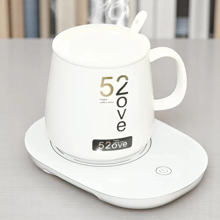 Enjoy your coffee, tea, or hot chocolate at the perfect temperature with this stylish and functional Coffee Cup Warmer Set! Includes a ceramic mug, spoon, and warming base – perfect for home or office use.