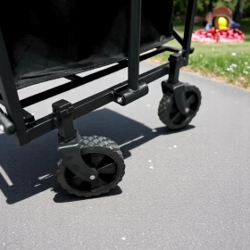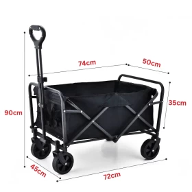 Make transporting heavy loads easier and more efficient with the Heavy-Duty Folding Wagon Cart. Featuring a spacious storage area (62 x 49 x 13 cm), this cart is perfect for tools, groceries, toys, and travel essentials. The heavy-duty rubber wheels rotate 360°, making it easy to maneuver on various terrains, while the adjustable telescopic handle allows for comfortable handling. Built with a rust-proof steel frame and waterproof nylon fabric, it can support up to 55kg, ensuring strength and durability.