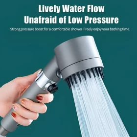 Upgrade your daily shower with this powerful and refreshing 3-function handheld shower head, designed to improve water pressure, purify your water, and give your scalp a gentle massage. With 150 ultra-fine outlet holes and micro-pressure technology, it saves water while giving you a spa-like experience — perfect for homes with low water pressure.