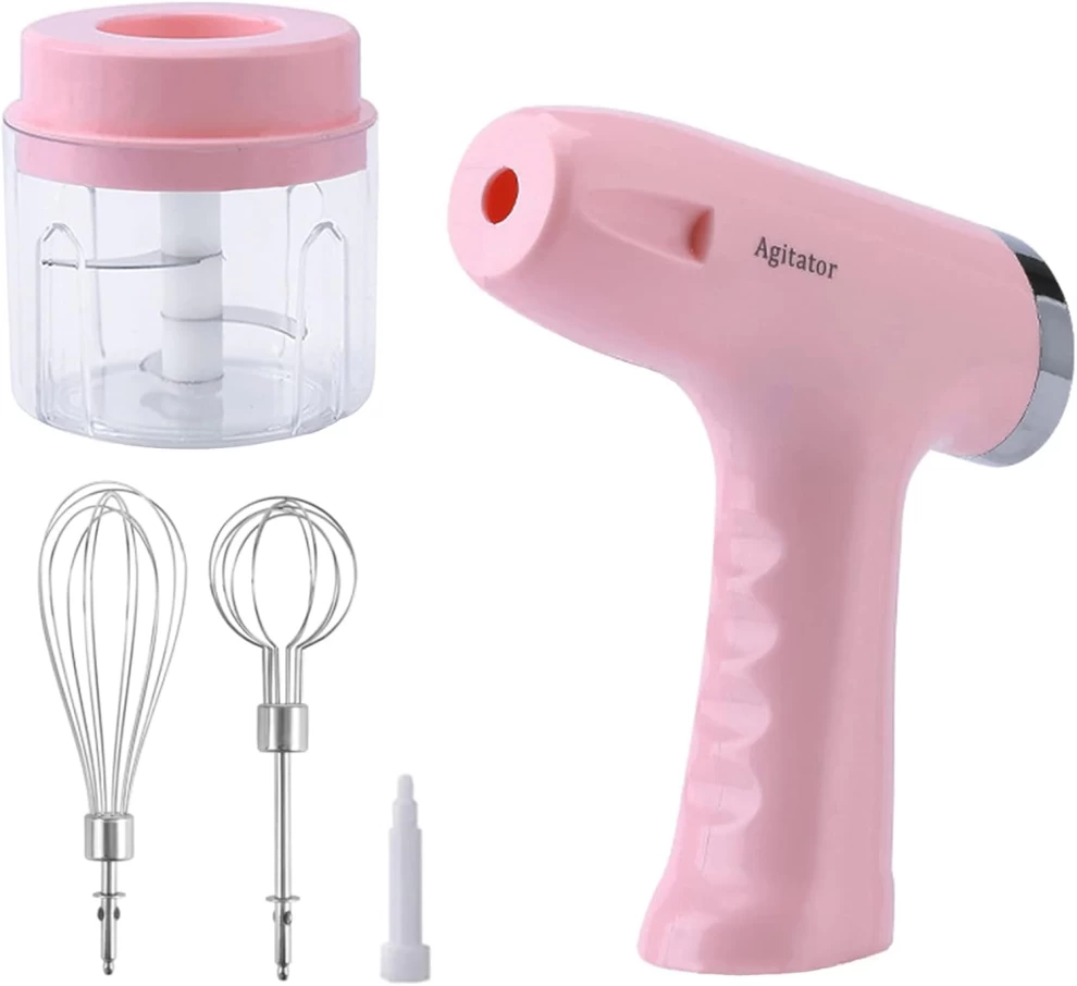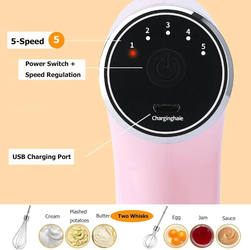 3-in-1 Cordless Mini Hand Mixer – USB Rechargeable Pink