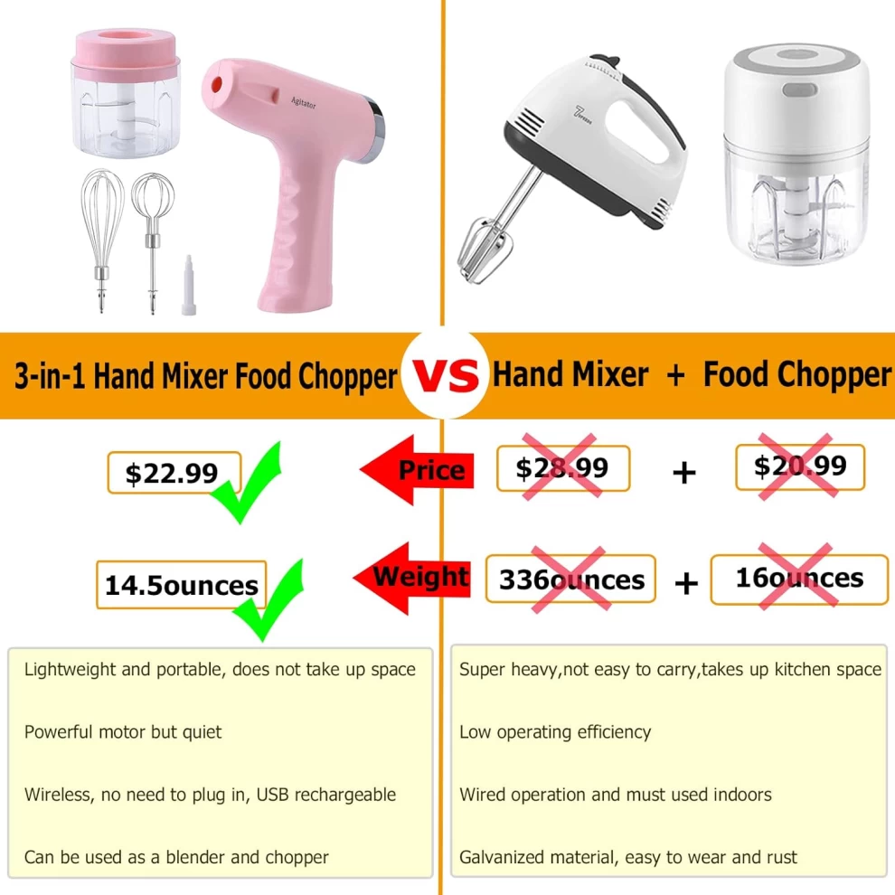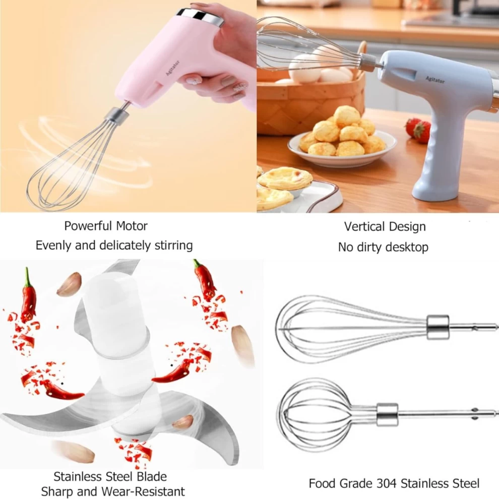 🌸 3-in-1 Cordless Mini Hand Mixer – USB Rechargeable | Pink 💕⚡