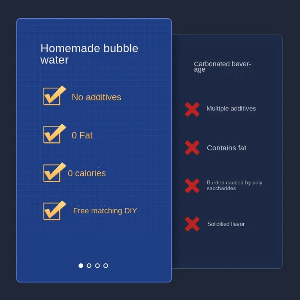 Enjoy fizzy, refreshing drinks anytime with this professional-grade sparkling water maker. Designed for convenience and safety, it requires no electricity, making it perfect for use at home, in the office, or outdoors. With a push-type carbonation system, built-in safety valve, and beep alert, you can make sparkling water in just seconds — effortlessly and safely.
