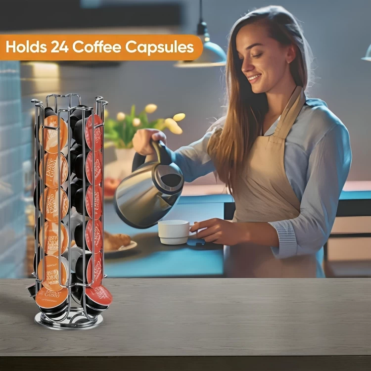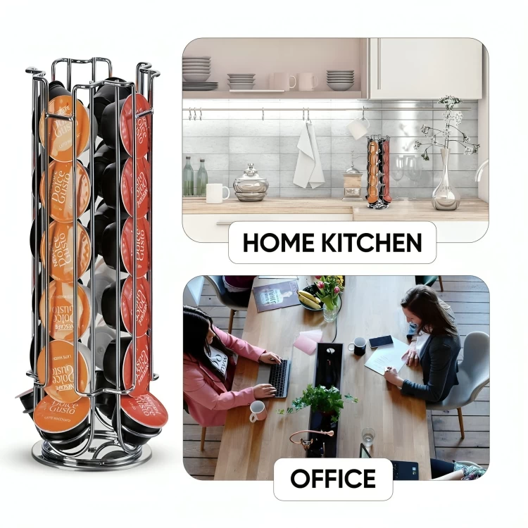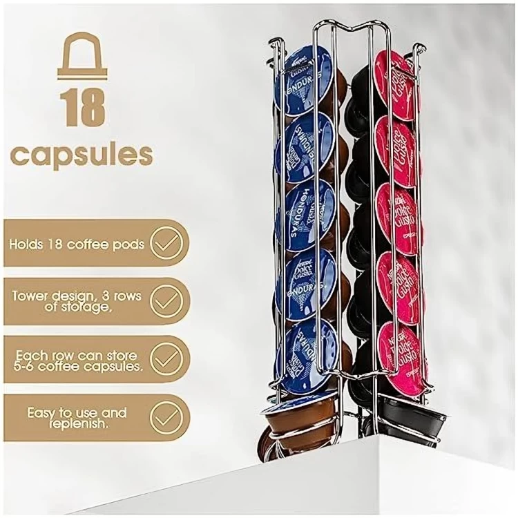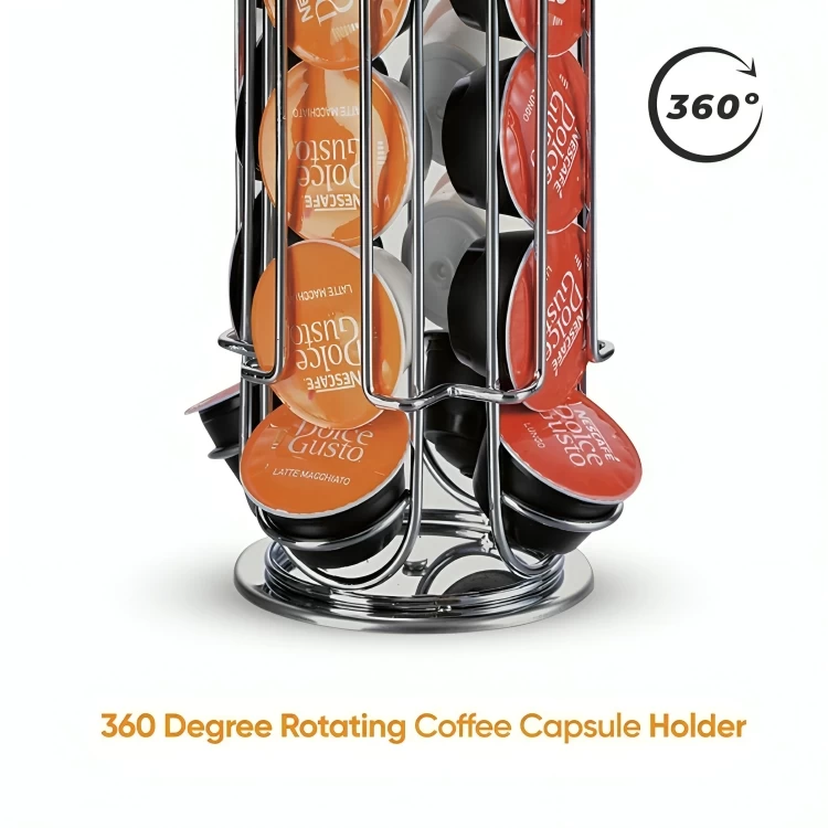 •  360-degree rotating - 360-degree rotatable base for easy capsule selection, rotating pod holder for up to 18 for dolce gusto capsules.