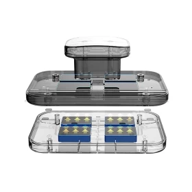 1. Separate the two magnetic halves and apply glass cleaner on both sides of the window.