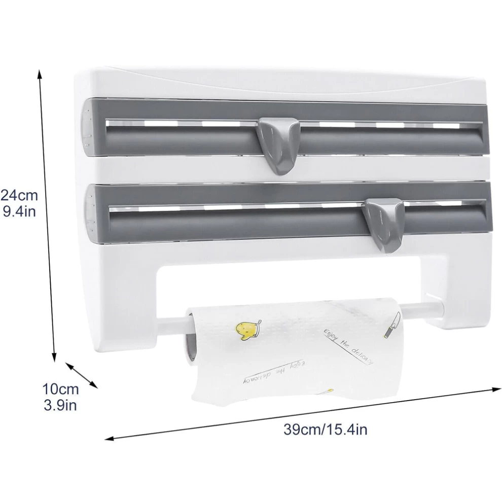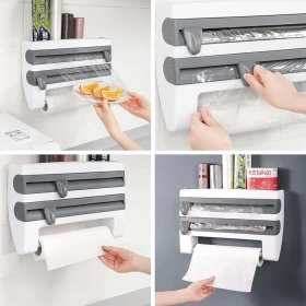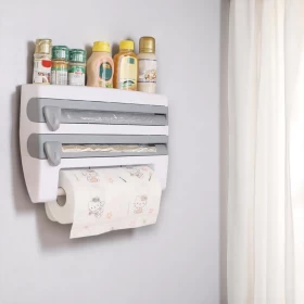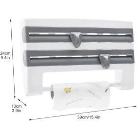 Make your kitchen smarter and more efficient with the Triple Tissue Paper Dispenser! Designed to save time and space, this wall-mounted organizer neatly holds your aluminum foil, cling film, and paper towel rolls—all in one compact tool. Say goodbye to messy drawers and frustrating roll cuts. With its sleek white & grey design, it adds both style and functionality to your kitchen setup.