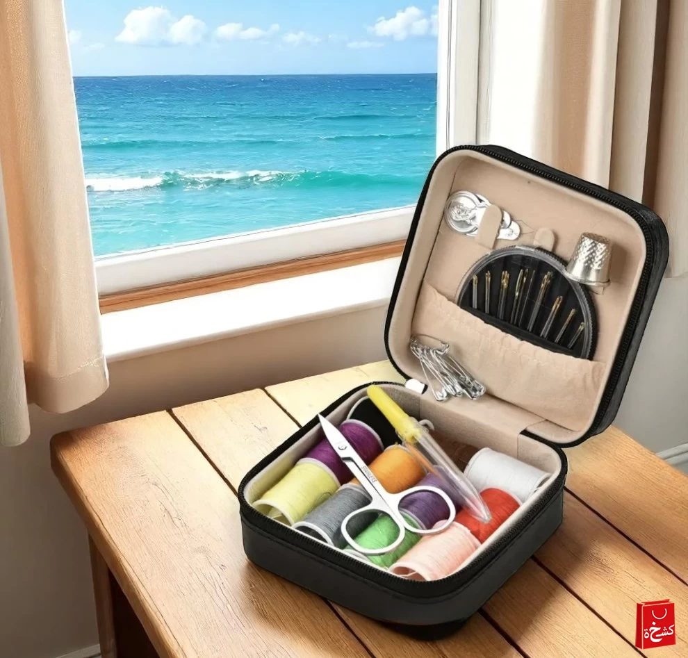 • 🧵 Tools Included: Needles, thread spools, scissors, buttons, safety pins, needle threader, measuring tape, thimble, and more