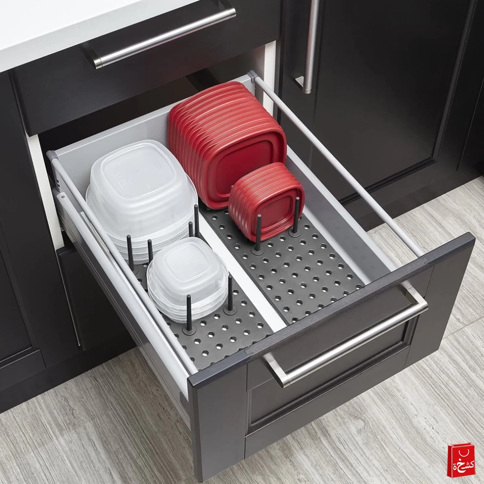 Keep your kitchen neat and clutter-free! This drawer tray offers multiple compartments to neatly organize cutlery, utensils, and small kitchen tools for easy access.