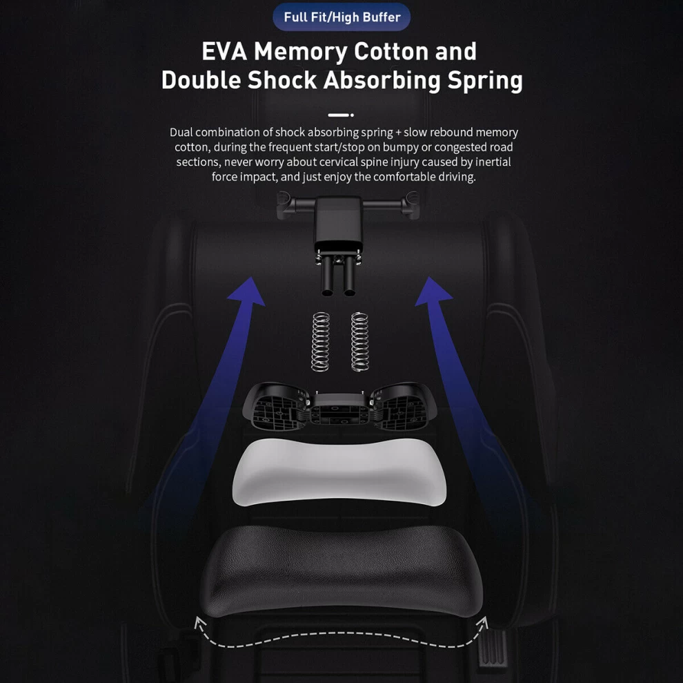 • Dual combination ofshockabsorbingspring + slow rebound memory cotton, during the frequent start/stop on bumpy or congested road sections, never worry about cervical spine injury caused by inertial force impact, and just enjoy the comfortable driving.